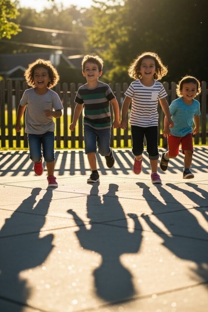 Schoolyards and parks are ideal settings for this kind of activity. Subtle guidance from an adult helps maintain focus.