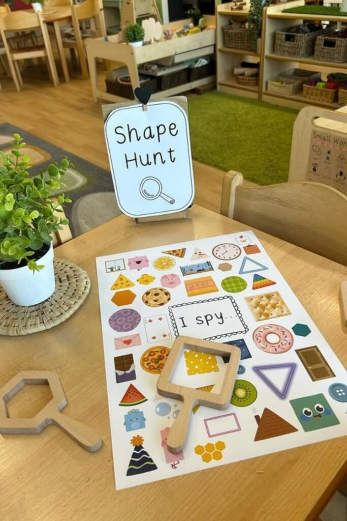 Kids notice patterns faster than objects which makes this hunt feel easy and rewarding. Print a simple shape sheet or draw icons on paper.