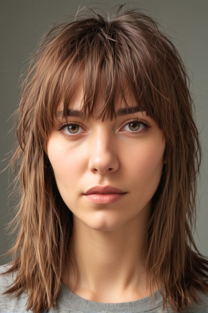 3. Long Shag with Choppy Bangs