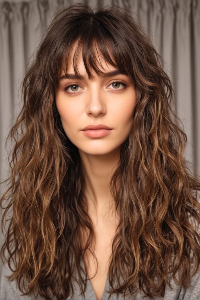 26. Long Wavy Shag with Curtain Bangs