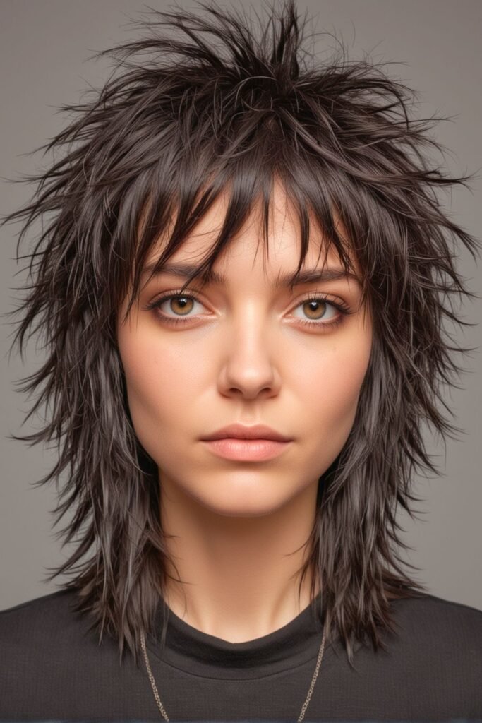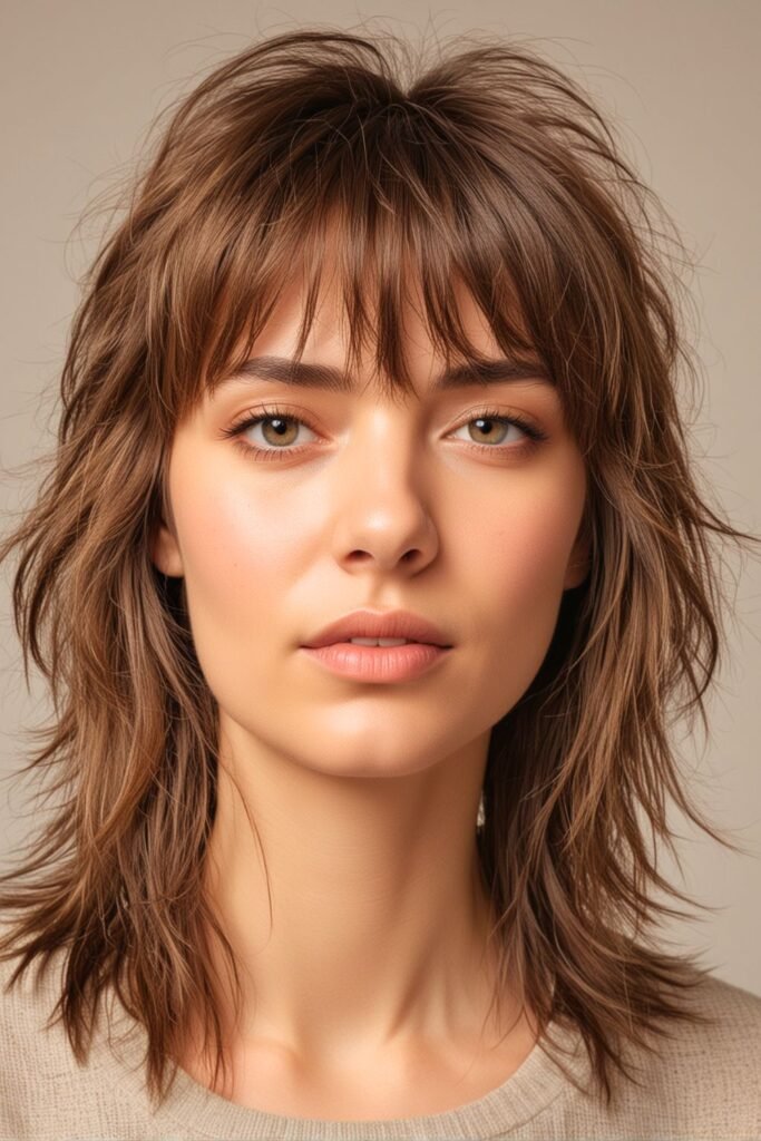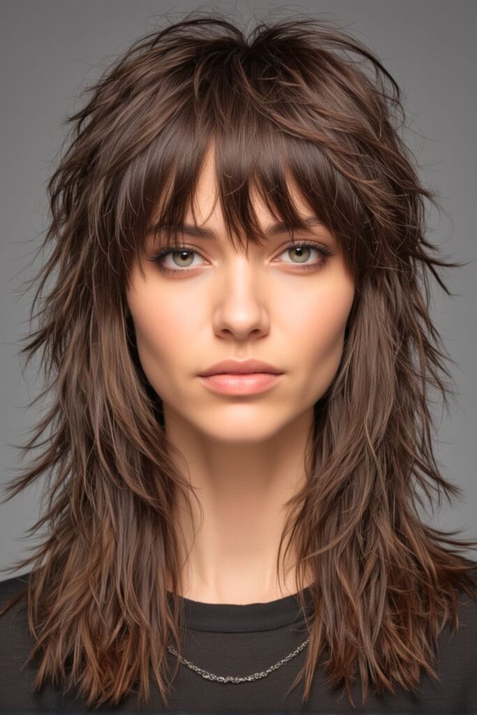 This shag haircut is perfect for those seeking a modern, edgy look that combines softness with a touch of rebellion.
