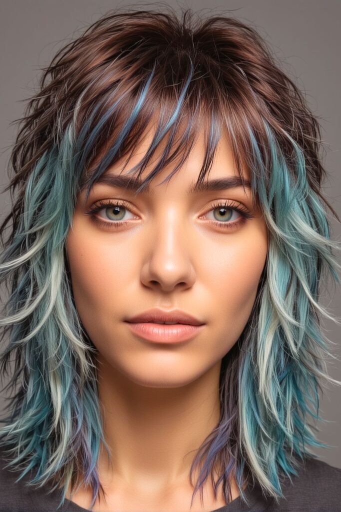 4. Layered Shag with Colored Highlights