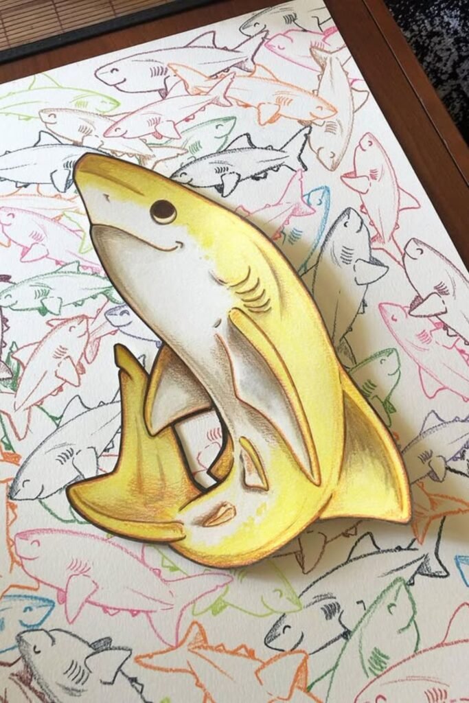 This method keeps things structured without being rigid or dull, so it’s a good way to make a shark craft that boosts confidence and teaches basic forms.