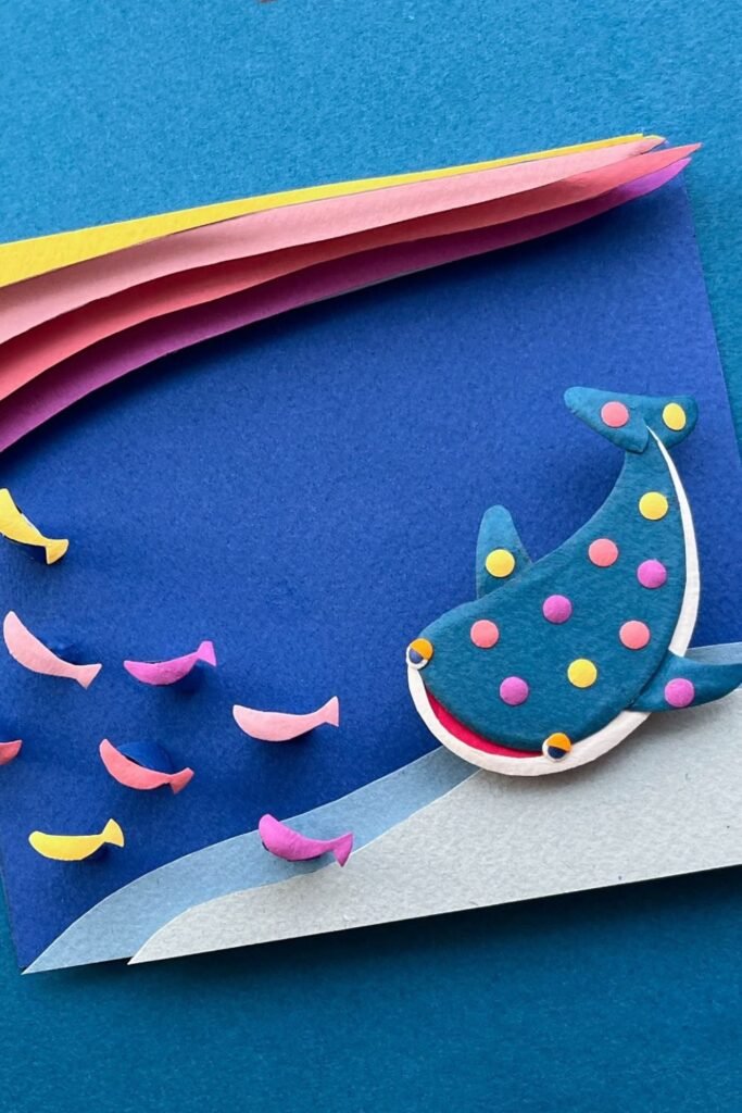 When you stack paper, it makes waves, fish, and a shark that looks like it’s swimming instead than sitting still. Cut the backdrop layers ahead of time.