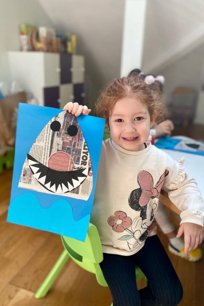 Finished crafts feel different when kids can hold them up and smile. A simple collage shark like this gives that “I did it myself” moment without complicated steps.