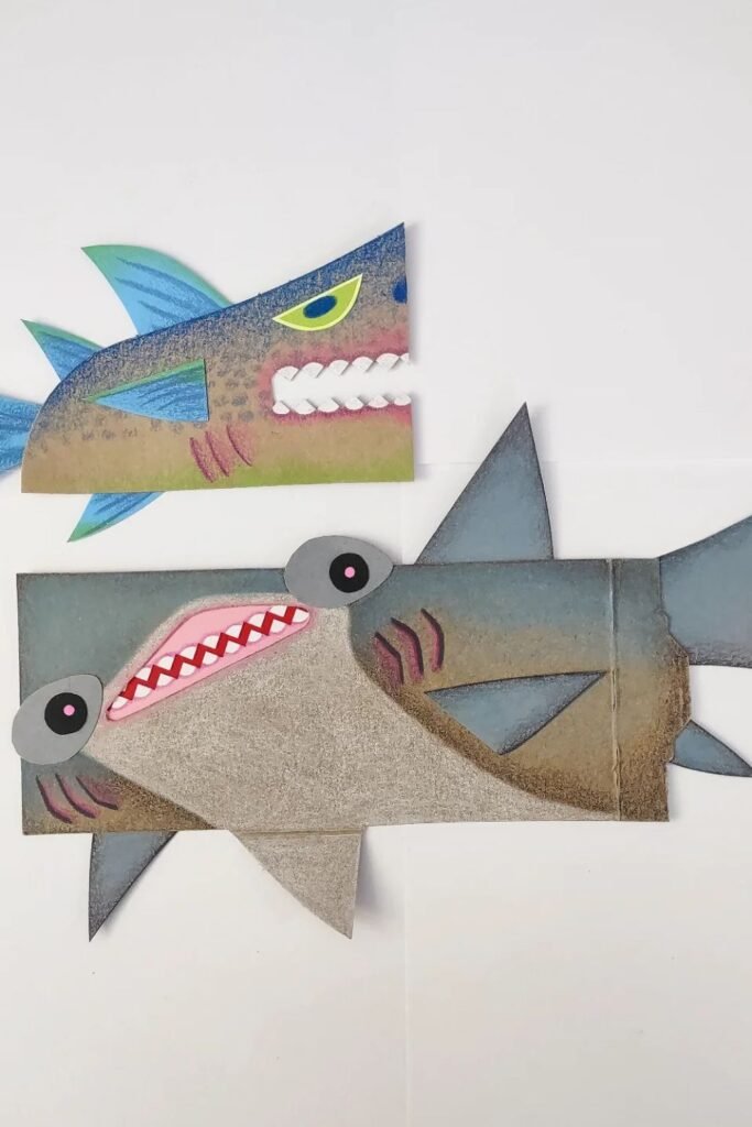 Moving parts instantly change how kids interact with a craft. Split the shark into simple sections head, body, legs.