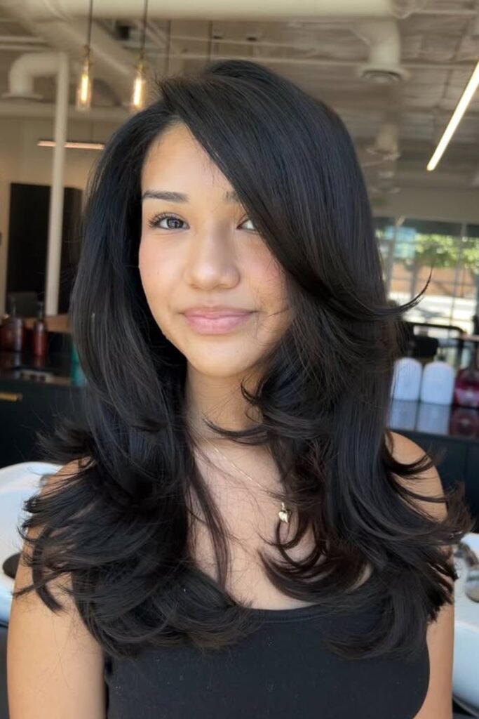 Face-framing shine does all the heavy lifting here, which is why this style feels so clean and soft at the same time.
