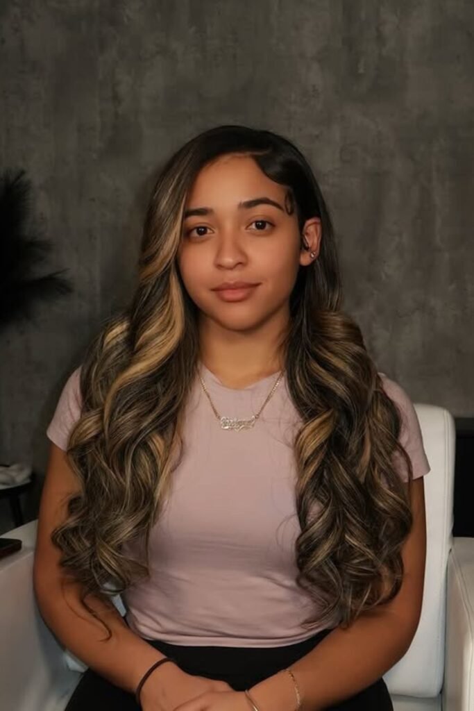 Soft curls only look defined when the part is clean, and that’s the secret holding this style together.