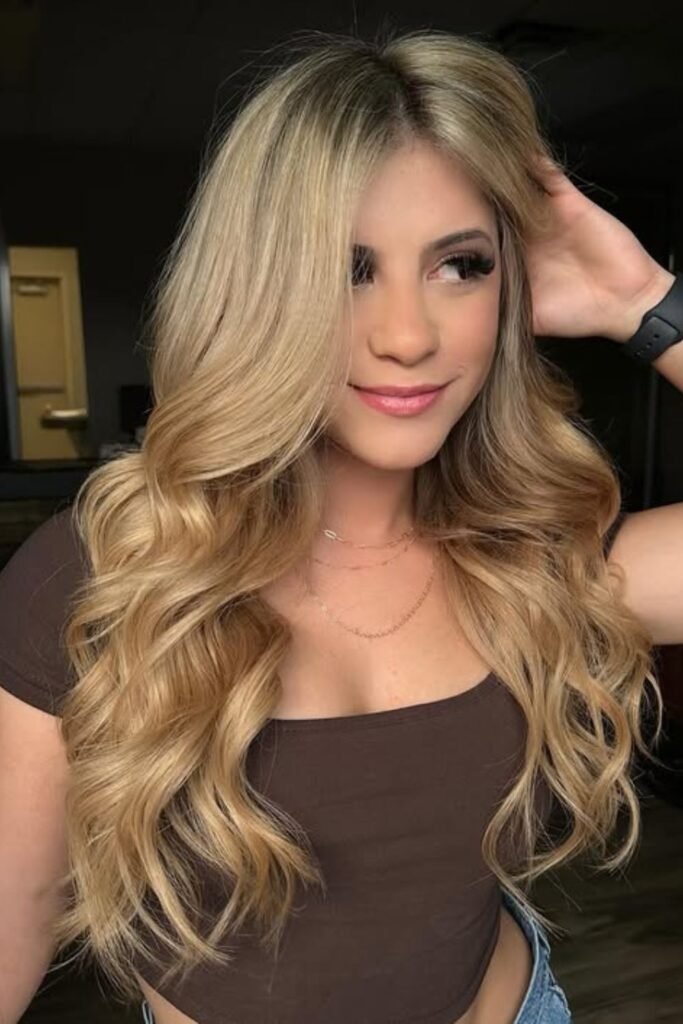 If you want that sun-kissed look without going all the way to platinum, ask for a deeper root melt and golden highlights in the middle and ends.