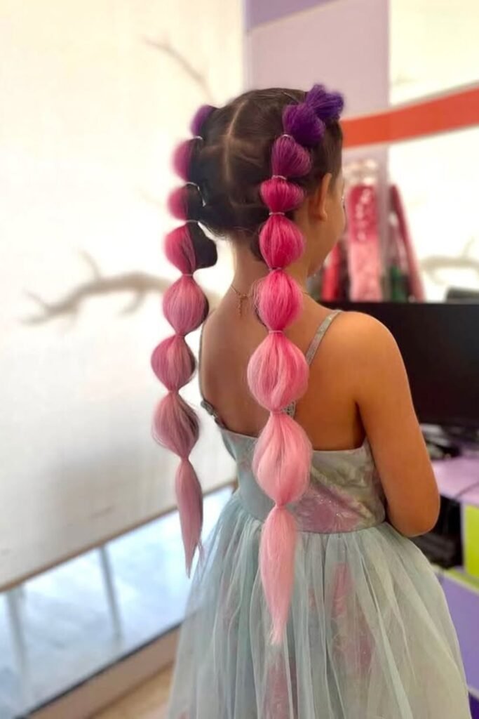 Playful color shifts make the bubble braids instantly stand out, turning them into a fun choice for parties, school events, or any day that calls for something bold.