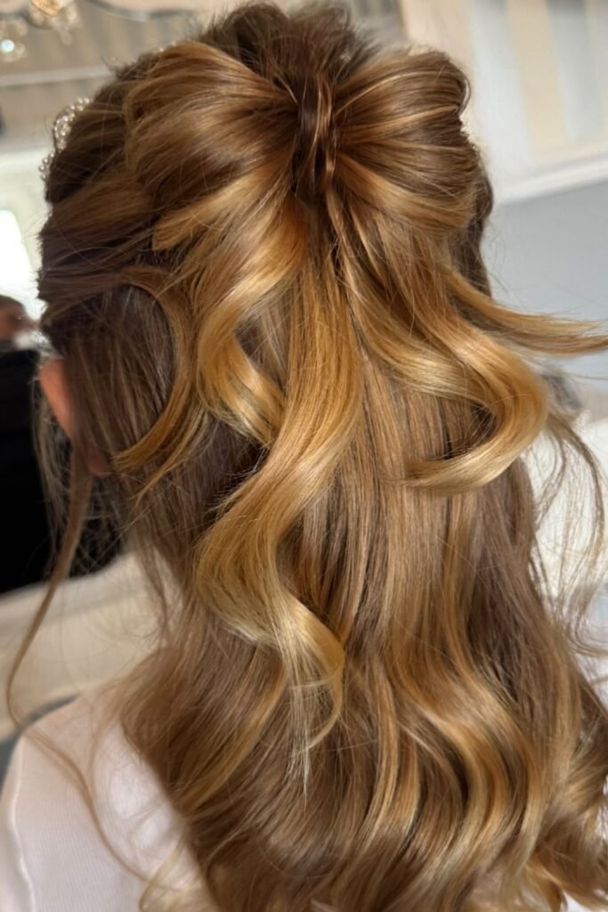 Soft charm appears instantly with the bow-shaped twist sitting above those loose waves, making it a lovely pick for birthdays, photos.