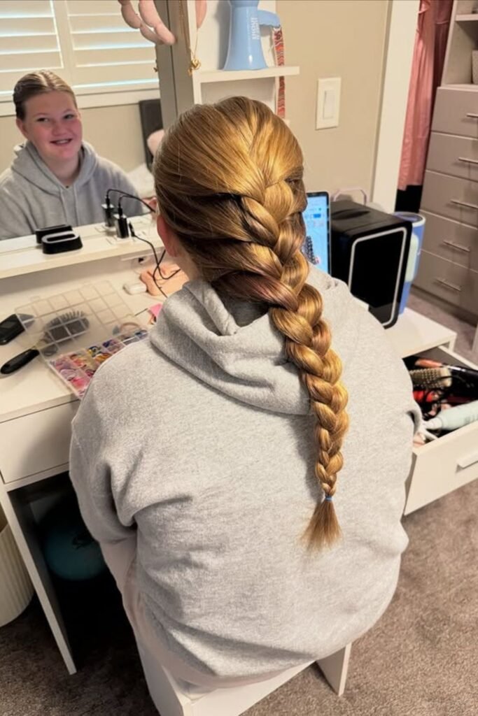 These Dutch braids give you a sporty, no-fuss look right away. They’re great for school, practice, or anything else that requires you to be active.