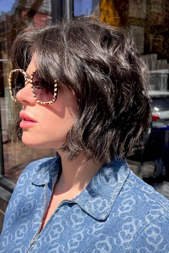 Controlled chaos works surprisingly well for thick hair. Choppy layers break up density from the crown down, so nothing feels heavy or stiff.