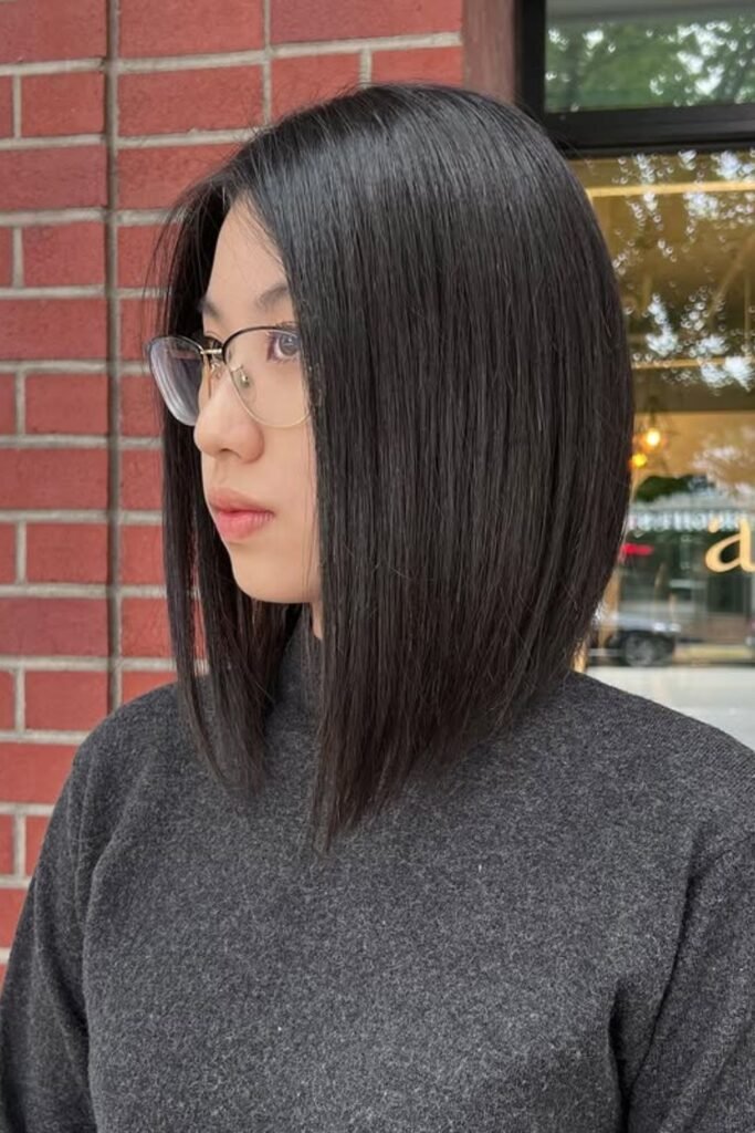 Sharp lines keep thick hair under control without extra effort. A clean, straight bob lets weight sit evenly, so nothing flips out or puffs up at the sides.