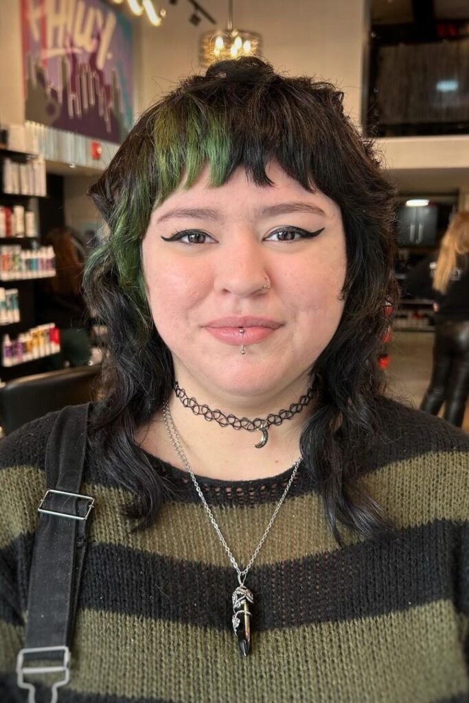 The short fringe lets light in at the front, and the longer length in the back balances out the volume.