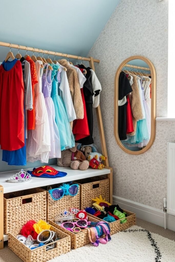 Costumes scattered everywhere usually mean kids are using them often. Giving dress-up its own nook makes play easier and cleanup faster.