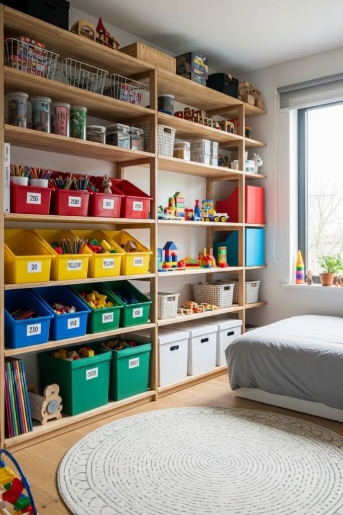 Organizing by activity and rather than by size is key. When storage is purposeful, not concealed children grasp where things go and tidy up more readily without prompting.
