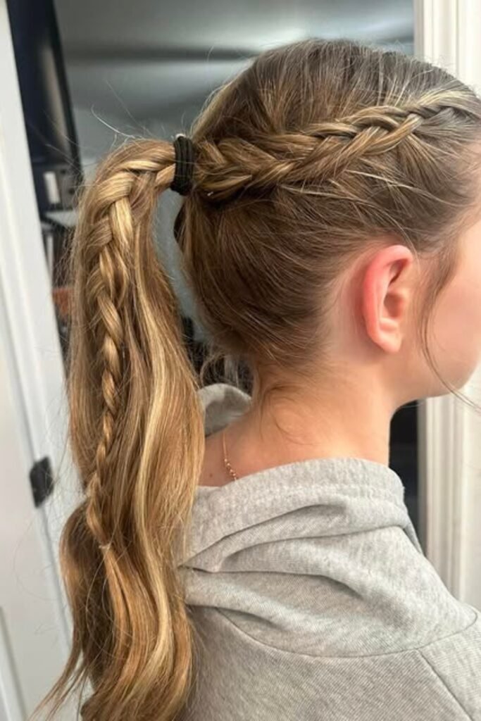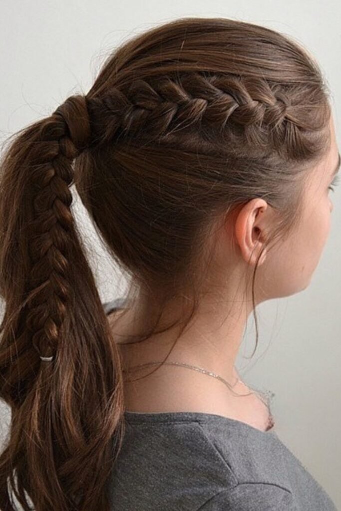 You want your ponytail to look soft yet remain stable. The smaller braid in the pony offers more grip.