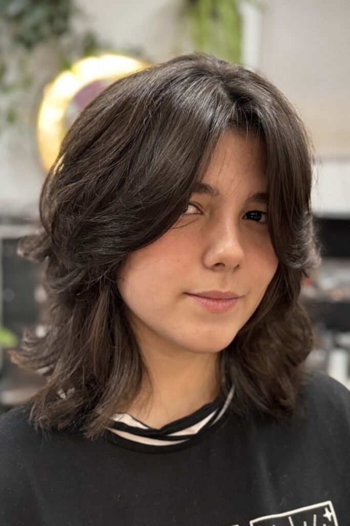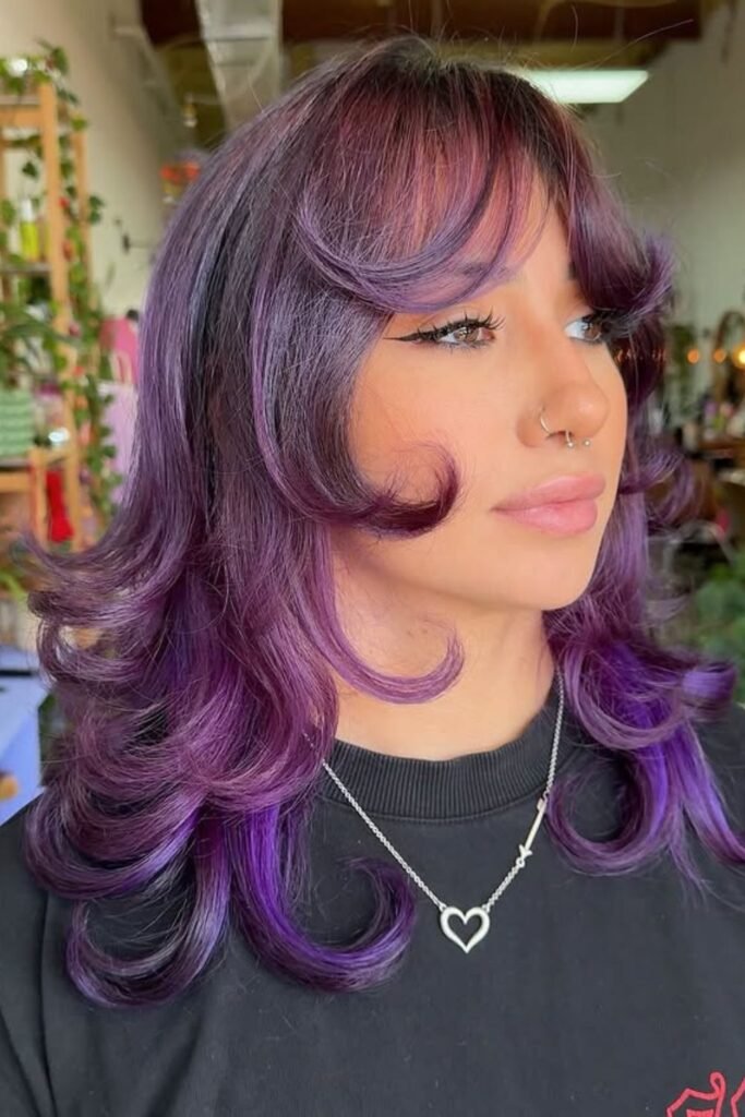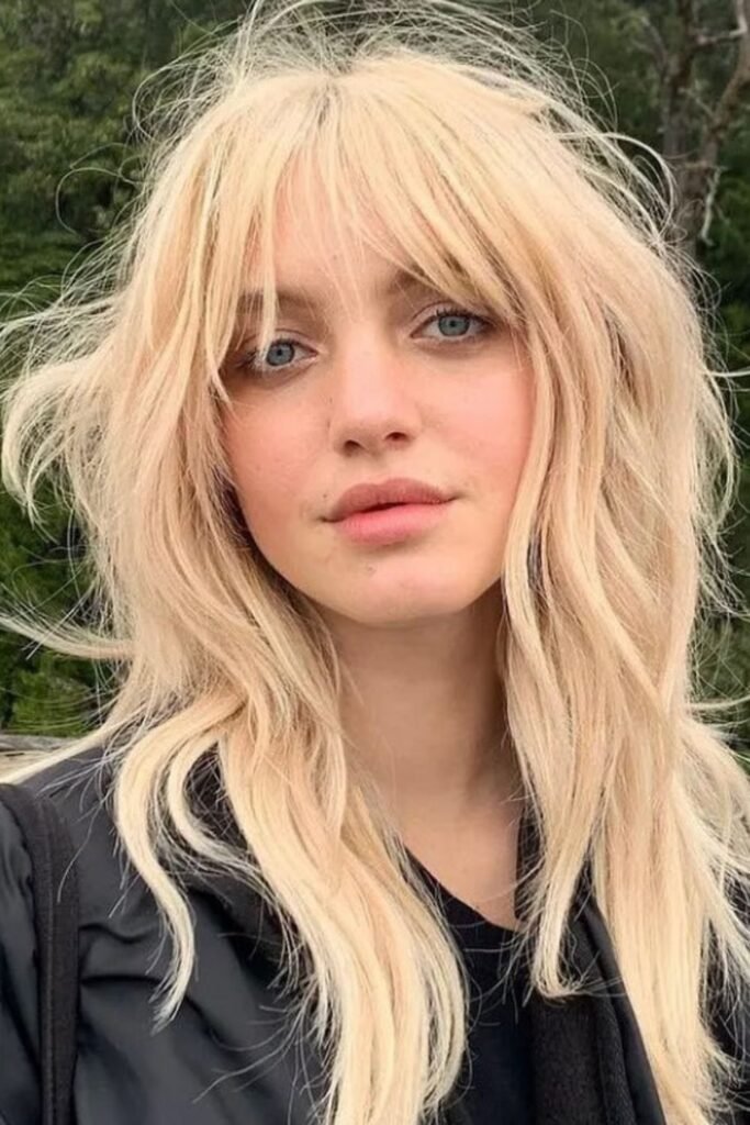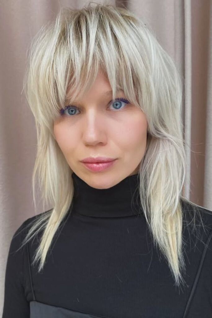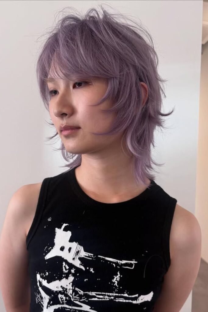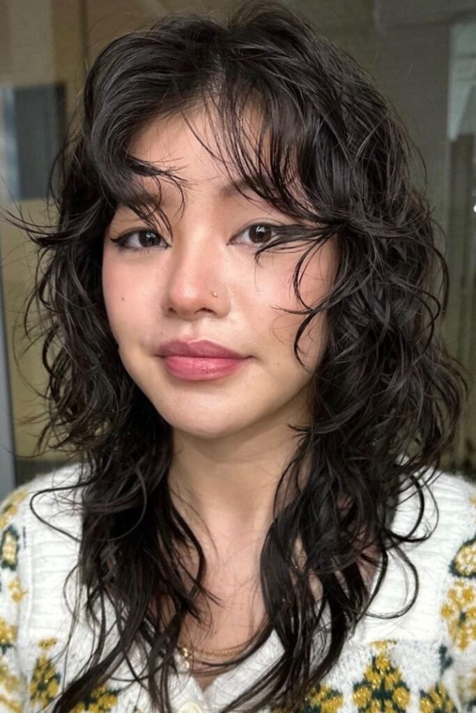 This shape lasts the longest on hair that is naturally straight or only slightly wavy. To get the soft, floating finish, ask for rounded wolf layers with big bangs.