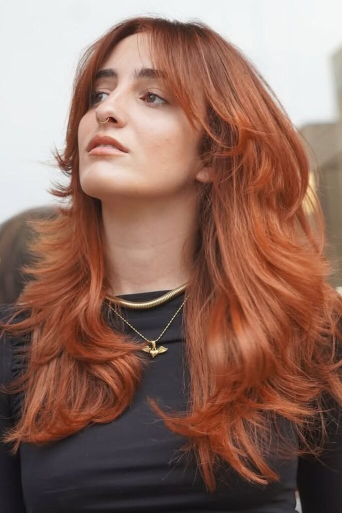 The copper shade makes every flipped layer sound louder, so this cut never looks flat, even on days when you don’t have to try hard.