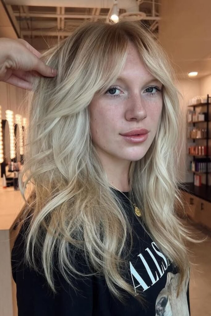 Morning hair feels different when the front layers fall like this they hide flat roots and shape the face without heavy styling.