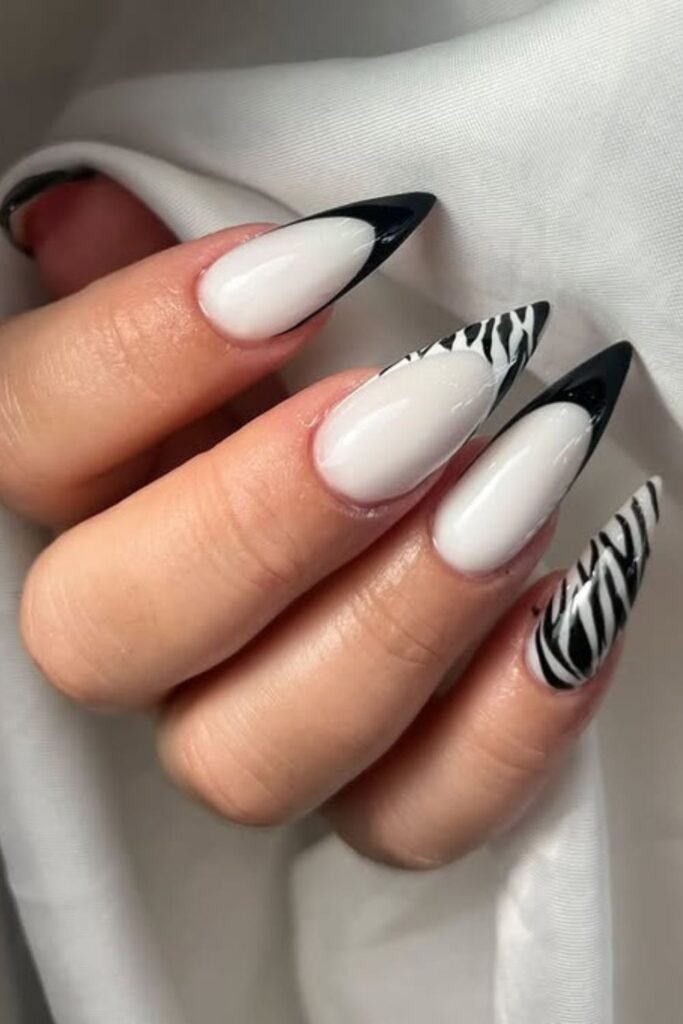Mixing white and black zebra tips creates a modern contrast that feels both playful and balanced.