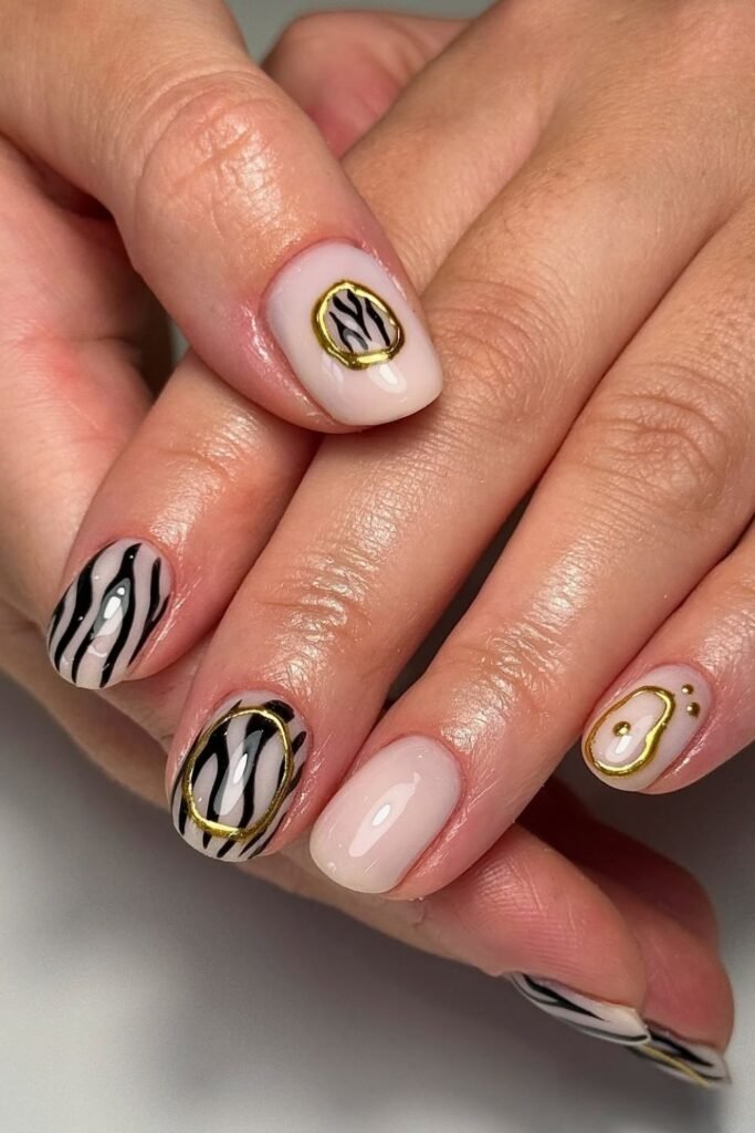 Gold detailing turns simple zebra nails into something elegant and refined.